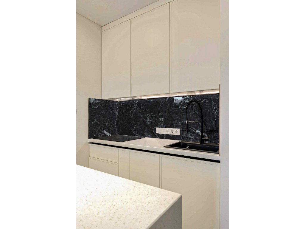 6. Přiložte panel na stěnu nejlépe na již připravené pomocné body. Vyhlaďte celý povrch rukou tak aby se dostatečně přichytil. Panely by se měly překrývat v rozmezí 3-6mm, záleží na zvoleném dekoru.