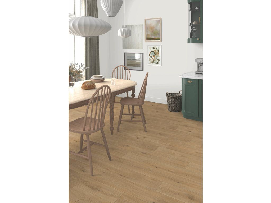 PVC Duplex 1716 dubové prkno imituje dřevěnou podlahu a strukturou je k nerozeznání od pravé dubové podlahy. Podklad PVC tvoří filc, který má spoustu výhod: jak izolační - tepelnou a hlukovou, mírné vyrovnání podkladu, dodává PVC pevnost. Dostupné v šíři 3m a 4m.